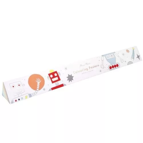 Twee grote kleurplaten ‘Space coloring posters’ van het Engelse merk Meri Meri met holografisch folie voor alle creatieve liefhebbers van de ruimte. Sommige stukjes zijn al ingekleurd met glimmend folie – voor een echt futuristische sfeer -, maar het is aan de kleine kunstenaar om de posters vol met sterren, planeten en robotten verder leven in te blazen!
