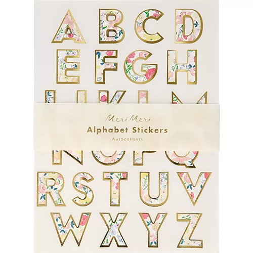 Tien bladen met ‘English Garden Alphabet Stickers’ van het Engelse merk Meri Meri om een agenda, notebook, poster of iPad op te pimpen! De stickers hebben een goudkleurige rand en vulling van fleurige bloemen.