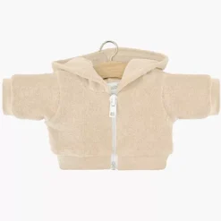 Met dit behaaglijke poppenvestje ‘Sweat à capuche en éponge lin’ van het Franse merk Minikane is de babypop klaar voor een sportieve dag. Het vestje met rits heeft een capuchon en is gemaakt van een linnen badstof.