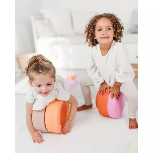 Het multifunctionele speelgoed motiveert kinderen om te bewegen en actief te spelen. Opgestapeld vormen de stapstenen een handig zitje of opstapje. Los van elkaar kunnen ze dienst doen als onderdelen van een parcours of zijn ze te gebruiken als grote bouwblokken. Zo bieden de bouwstenen kinderen alle ruimte voor écht open ended play.