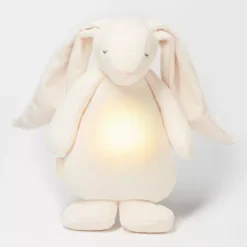 Dit kalmerende, katoenen knuffelkonijn ‘The Humming Friend – Cream’ van het Poolse merk Moonie brengt de baby naar dromenland. Het unieke speelgoed is niet alleen een onweerstaanbare knuffel voor de allerkleinsten, maar heeft een sfeervol nachtlampje, verschillende rustgevende geluiden en een huildetector.