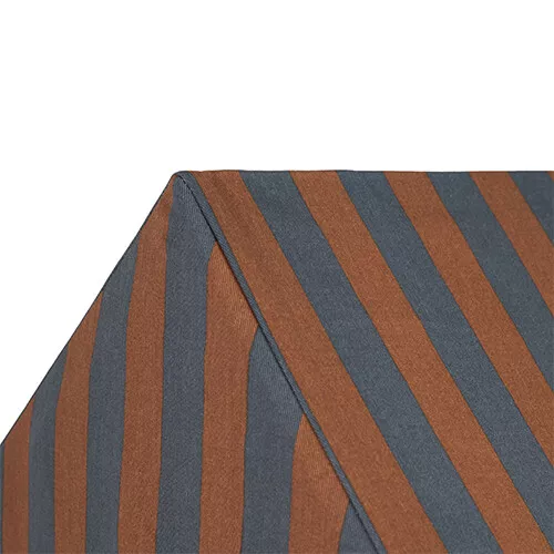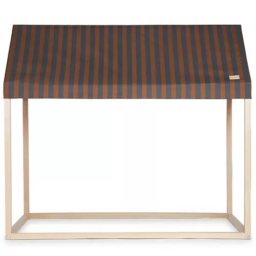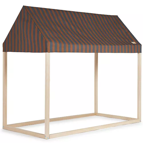 Creëer een multifunctionele hoek voor kinderen met het open speelhuis met stoffen dak ‘Majestic Playhouse – Blue Brown Stripes’ van het Spaanse merk Nobodinoz.