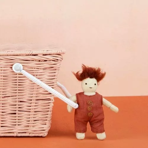 Poppenhuispopje ‘Glen’ uit de twaalfdelige ‘Holdie Folk’ serie van het Engelse merk Olli Ella. Deze handgemaakte speelgoedpopjes wonen in en om het houten ‘Holdie’ poppenhuis, maar feitelijk maakt het ze niets uit waar ze wonen. De kleine lappenpopjes hebben een perfect formaat voor kleine kinderen om overal mee naar toe te nemen of in te stoppen.