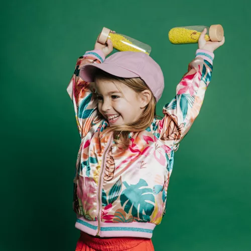 Kleur, geluid en magie komen samen in de sensorische fles ‘Sound Bottle Toucan’ van het Spaanse merk Petit Boum. Beweeg de betoverende fles heen en weer en zie de toekan heen en weer vliegen naar haar nestje en het heerlijke fruit.