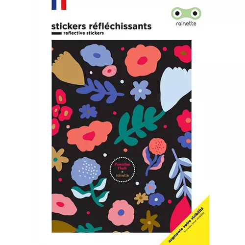 Pimp de kinderfiets of kinderhelm met deze reflecterende stickerset ‘Flowers’ van het Franse merk Rainette. De fietsstickerset is perfect voor het vergroten van de zichtbaarheid in het donker en voor kinderen om een eigen draai aan hun helm of favoriete vervoersmiddel te geven!
