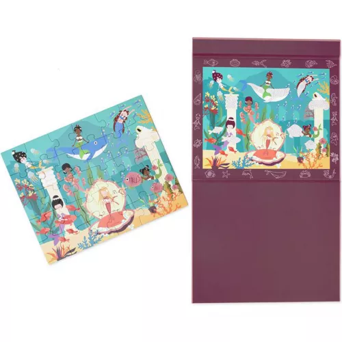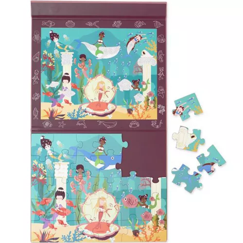 Ontdek de geheimen van het onderwaterleven met deze magnetische kinderpuzzel ‘Mystery – Zeemeermin’ van het Belgische merk Scratch Europe. Het uitklapbare puzzelboek bestaat uit twee vlakken, waar bovenaan te zien is hoe de puzzel moet worden en onderaan de puzzel op het magneetvlak nagemaakt kan worden.