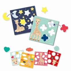 Waar horen de sterren? In de lucht! Plak de verschillende vormen op de juiste plek met het knutselpakket ‘Vormen Plakken’ uit de Sophie de Giraf lijn van het Nederlandse merk SES Creative.