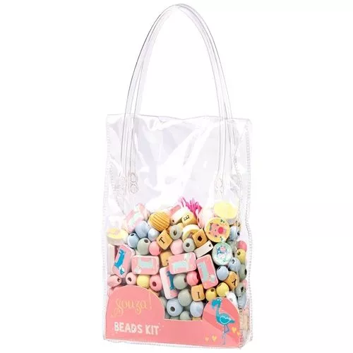 Een tasje vol houten kralen om eindeloos mee te rijgen. Deze ‘Kralen knutsel set Dieren’ van het Nederlandse merk Souza for Kids bevat een roze rijgkoord en een grote hoeveelheid rijgkralen in verschillende pasteltinten. Dit knutselsetje kan op zichzelf staan maar ook dienen ter uitbreiding van de andere kralensets van Souza.