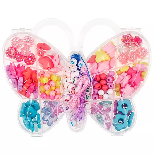 Een vlinderdoosje met kleurrijke rijgkralen van het Nederlandse merk Souza for Kids, voor het maken van mooie kindersieraden.