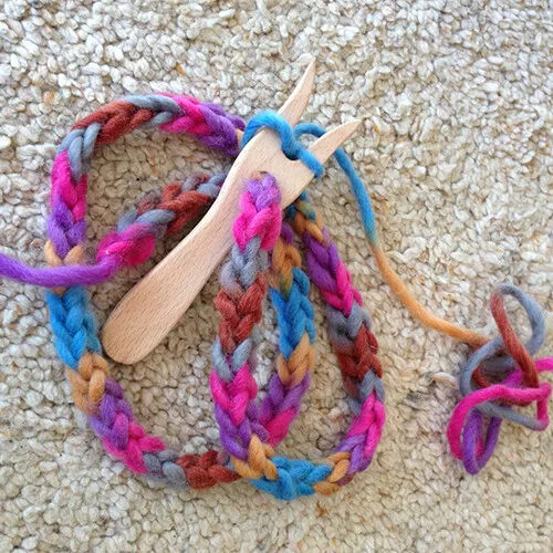 Breien is een heerlijk rustgevend werkje voor jong en oud. De breivork van het Nederlandse merk Speelbelovend helpt daar een handje bij. Breien met een breivork is vergelijkbaar met punniken en heeft als resultaat een lange vlecht.