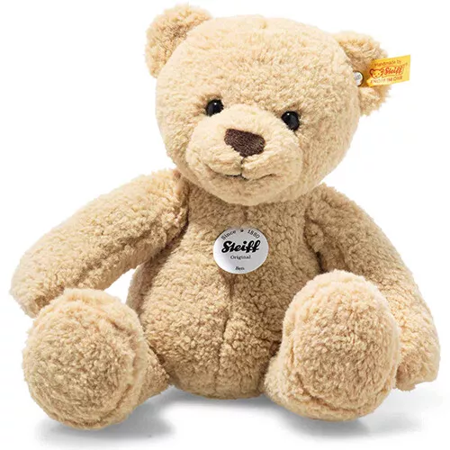 Teddybear Ben is een trouwe, vertederende speelgoedbeer van Steiff. De knuffelbeer is gemaakt van zacht geweven teddy fleece dat super zacht en natuurlijk aanvoelt. De teddybeer is onweerstaanbaar met zijn zwarte kunststof kraaloogjes, donkere neusje en vriendelijke blik.