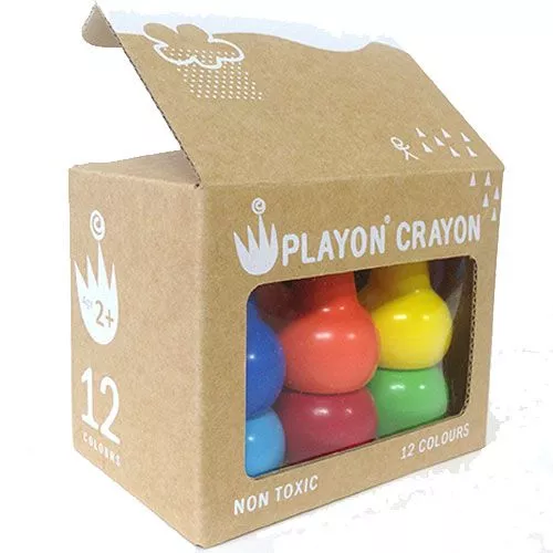 Een set van 12 design waskrijtjes in primaire kleuren uit de serie Playon Crayon van het merk Studio Skinky.