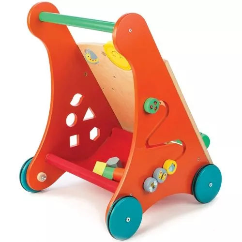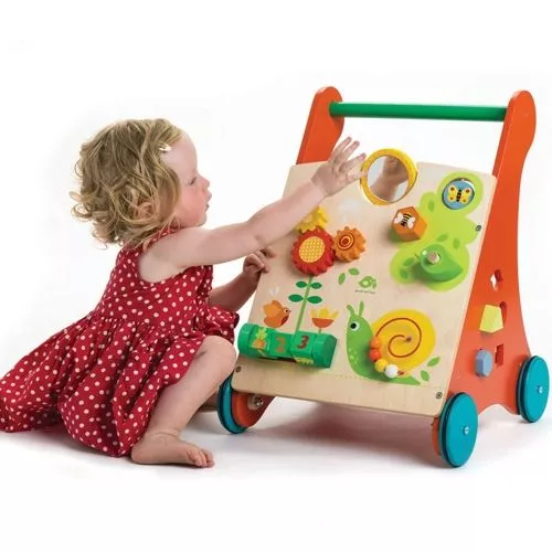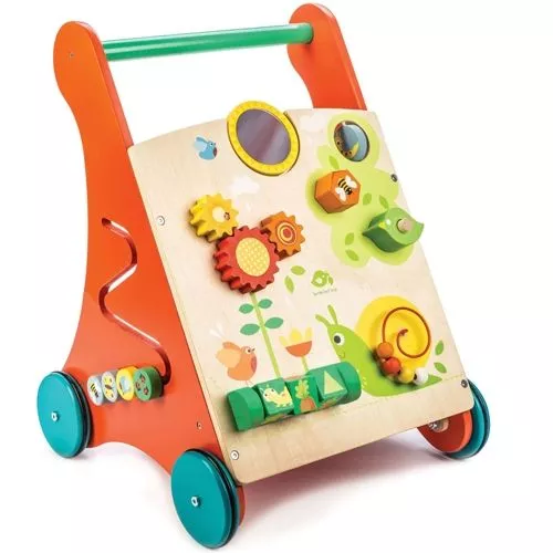 De ‘Baby Avtivity Walker’ van het Engelse merk Tender Leaf Toys is een stabiele loopwagen vol spelletjes voor de beginnende stapper. De loopwagen is een fijne hulp bij de eerste stapjes en zit vol vermaak. Draaiende tandwielen, de kralen op de slak, een vormendoos, een spiegeltje en draaiende blokken bieden veel te ontdekken.