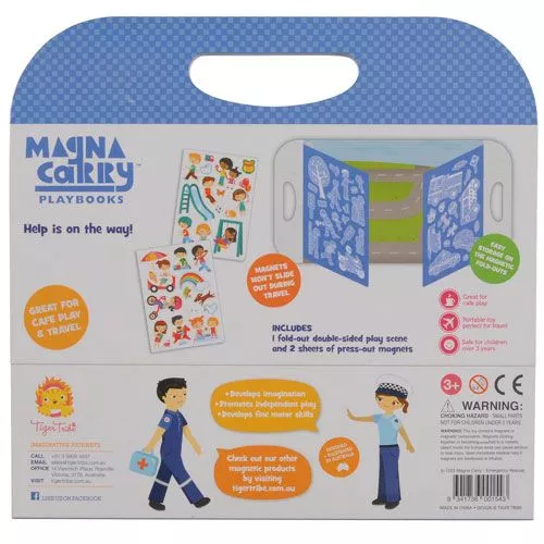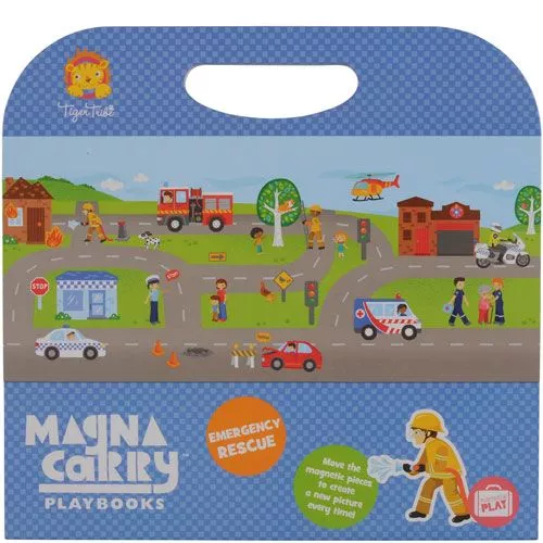 Een stoere jongen kan met magneetboek ‘Magna Carry – Emergency Rescue’ van het Australische merk Tiger Tribe heldhaftig bij allerlei gevaarlijke situaties met spoed de redders inschakelen en het verkeer regelen.