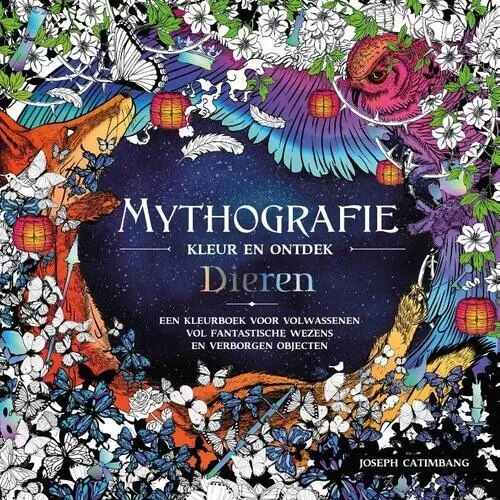 ‘Mythografie – Kleur en ontdek dieren’ van Joseph Catimbang is een kleurboek vol uiterst gedetailleerde kleurplaten.