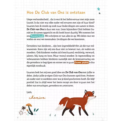 In dit prachtige invulboek vol vragen, opdrachten en inspiratie kunnen ouder en kind elkaar vragen stellen, antwoorden geven en geheimen onthullen. Er is ruimte voor foto’s, knutseldingen, brieven of andere mooie herinneringen. Je mag erin schrijven wat en wanneer jij wilt. De enigen die het lezen zijn de clubleden. Dat maakt dit boek zo bijzonder en verbindend. Welkom bij De Club van Ons: het leukste invulboek voor ouder en kind!