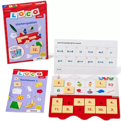 ‘Loco Mini starterspakket’ van uitgeverij Zwijsen is een uitdagend spel voor kinderen van 4-6 jaar. Het kind maakt de opdrachten uit een boekje met gebruik van de steentjes in de basisdoos. Vervolgens controleert hij of zij zélf of de opdrachten goed gemaakt zijn door de basisdoos om te draaien. Een spannend moment! Zijn de figuren hetzelfde als op de opdrachtkaart? Dan zijn de opdrachten goed uitgevoerd.