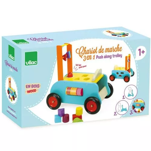 Leren lopen met deze combi 3-in-1 loopauto ‘Chariot de marche 3 en 1’ van het Franse merk Vilac. Deze houten loopbus heeft naast een vrolijke claxon om ieder te waarschuwen voor de komst van de kleine wandelaar, bovenop ook nog een zitplaats. Zo kan de kleine chauffeur ook zittend rijden! Daarnaast heeft de loopwagen educatieve spelletjes om de peuter te vermaken: van een grappige vormendoos tot draaiende elementen.